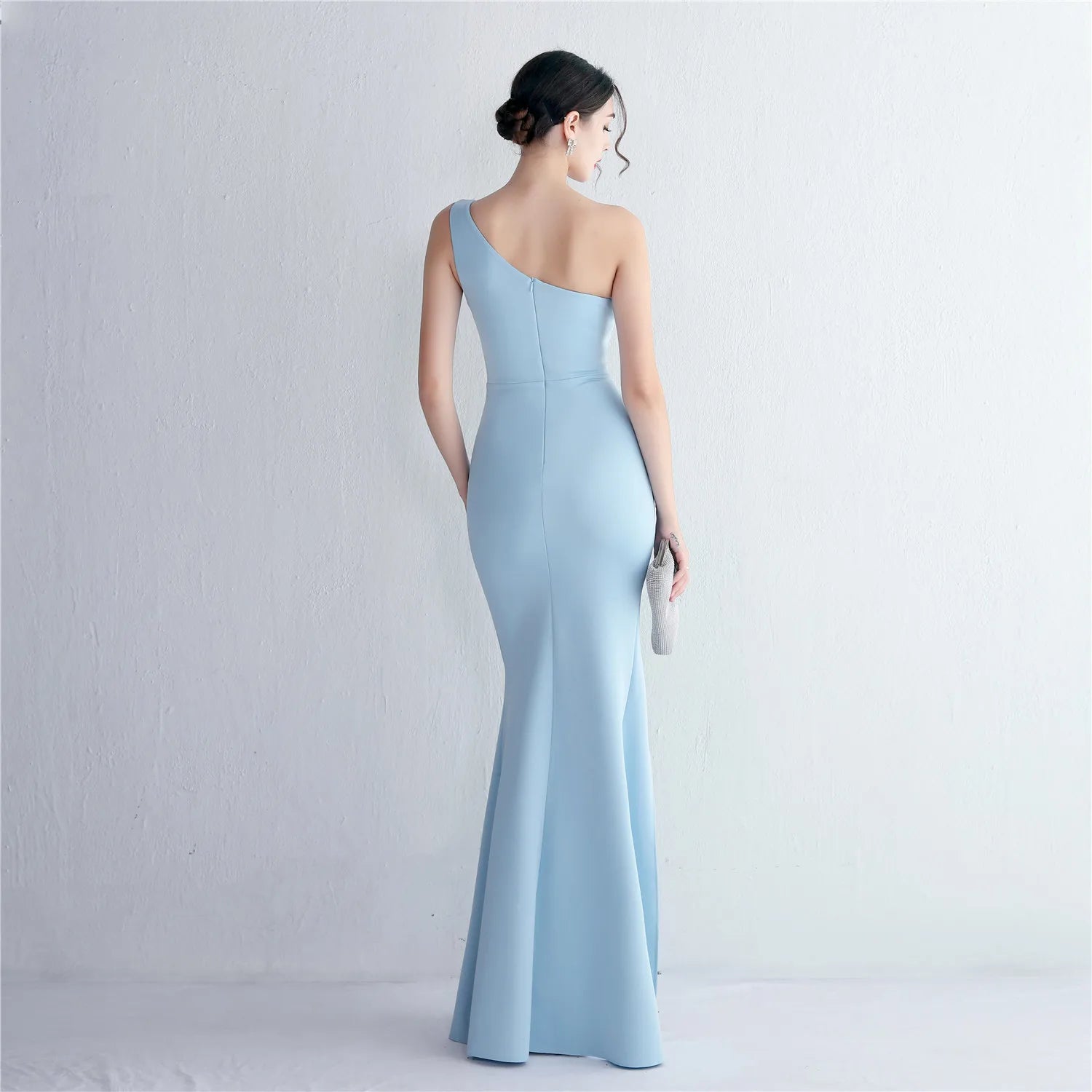Light Blue - Raquel One Shoulder Cut Out Gown Dress